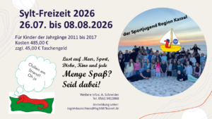 Die Zeltlager-Freizeit der Sportjugend Region Kassel von Sonntag, 26.7. bis Samstag, 8.8.2026 und die TSG 1887 ist wieder dabei. Baden,