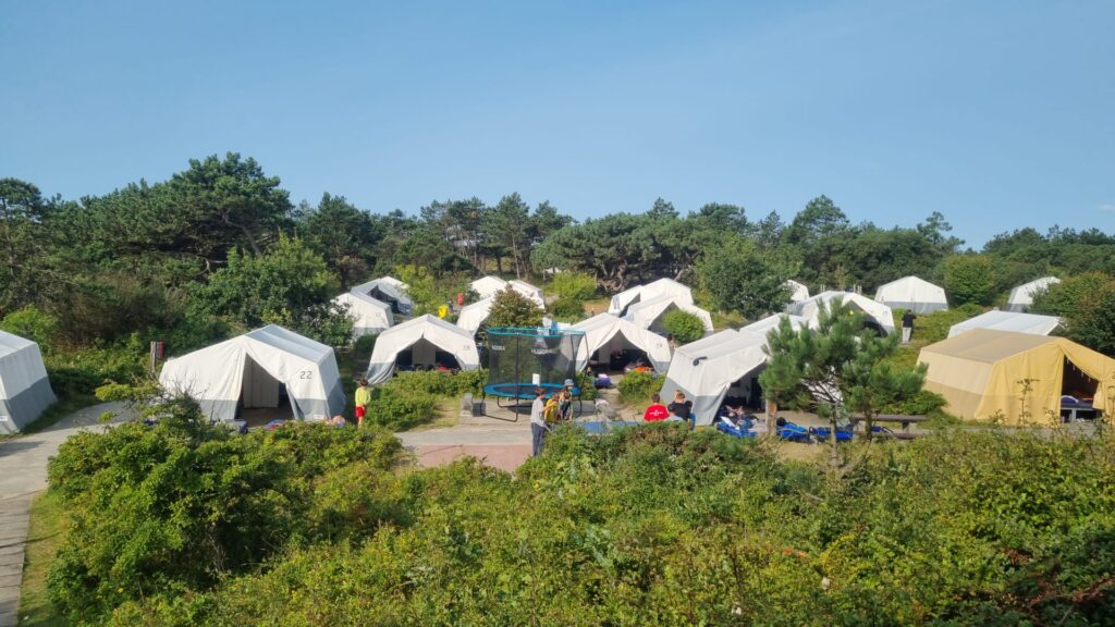 Im Camp selbst war rund um die Uhr etwas los: Im Bastelzelt entstanden Perlenketten, gravierte Schlüsselanhänger und Gläser, bemalte Crew-Socken und jede Menge kreative Meisterwerke. Wer keine Lust aufs Basteln hatte, spielte Tischball, chillte auf den neuen Sonnenliegen vor der Kommandobrücke oder rutschte, nicht selten ohne Landung im Sand.Manche entdeckten die erste große Liebe (andere bereits die dritte 😉), Frisuren wurden geflochten, auf dem Sportplatz Fußball, Basketball und Tischtennis gespielt oder man hing einfach mit Freunden ab. Zum Leidwesen einiger ist die Zeltaufgabe ein fester Bestandteildes Programms, hier heißt es Ordnung machen und alte Brötchen entsorgen, bevor sie vonselbst Richtung Mülleimer laufen. Ein Abstecher in die „Kogge“ zum Postkarten oder Eis Kaufen durfte ebenso wenig fehlen wie eine Runde Minigolf auf der frisch renovierten Anlageoder Vollgasfahrten mit der Seilbahn über den Spielplatz.